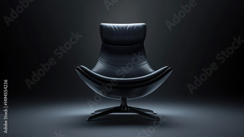 Sleek Leather Chair: A minimalist depiction of a sophisticated black leather chair. Bathed in dramatic light against a dark backdrop, it embodies modern design and luxurious comfort.