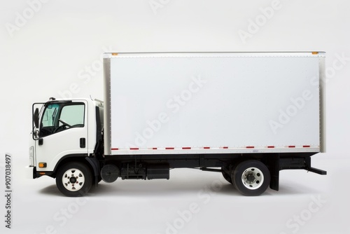 Sleek Light Duty Box Truck in Studio Setting and Focus on White Background