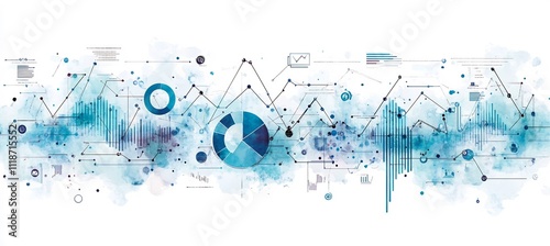 Sleek marketing background abstract graphs pie charts social media icons in light green and blue tones plenty of blank space