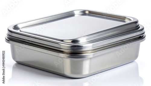 Sleek metal container with lid, isolated on white. Versatile for food storage, organization, ecofriendly concepts. Modern, minimalist style. Food safe.