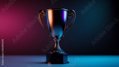 Sleek Metal Trophy in Neon Light, Symbolizing Success and Achievement