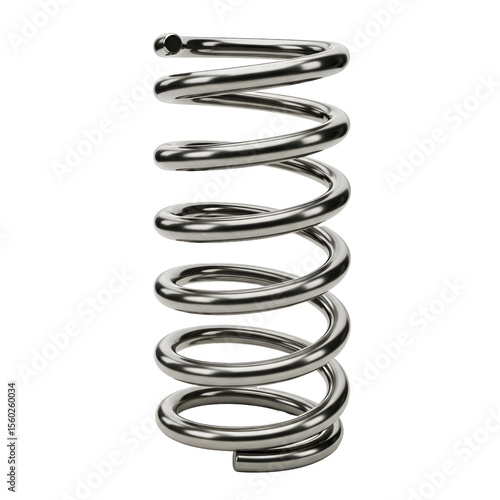 Sleek metallic spring reflects light against a stark backdrop, showcasing compression and recoil in a mechanical design.