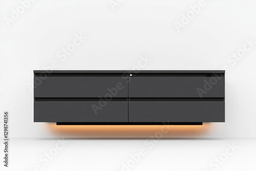 Sleek modern cabinet featuring clean lines and warm glow beneath