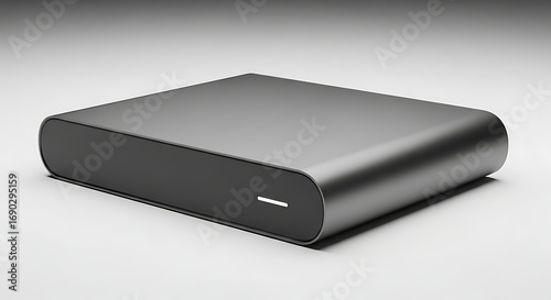Sleek modern external hard drive storage device on white background