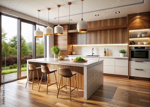 Sleek Modern Kitchen Design with Wood Accents Peninsula Island Layout for a Stylish and Functional Space
