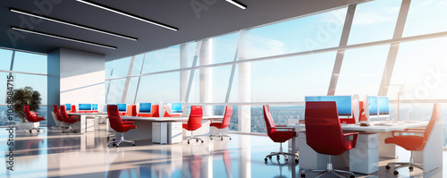 Sleek Modern Office Interior with Cityscape