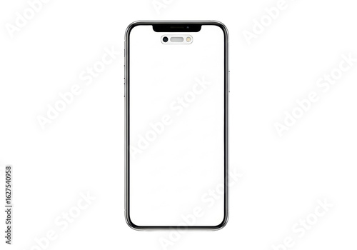 Sleek, modern smartphone, minimalist design, thin bezels, blank transparent screen with punch-hole camera, isolated on transparent background with ample copy space, uniform studio lighting, concept
