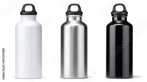 Sleek Modern Water Bottles in White, Silver, and Black Colors