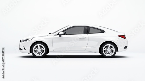 Sleek Modern White Coupe Car Displayed in Minimalist Studio Environment Emphasizing Elegant Design and Contemporary Aesthetics with Bright Lighting Effects