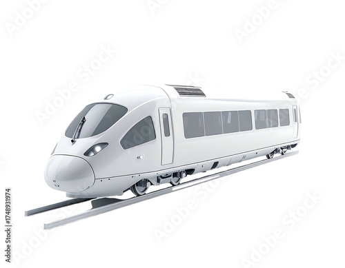 Sleek, modern white high-speed train on tracks, isolated against a black background