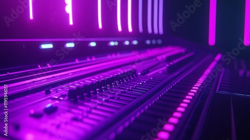 Sleek music production console with glowing LED panels in a futuristic studio environment