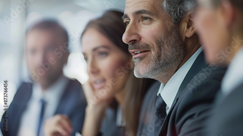 Sleek Office Setting: Professional Consultants Advising Clients on Business Strategies in Collaborative Discussion
