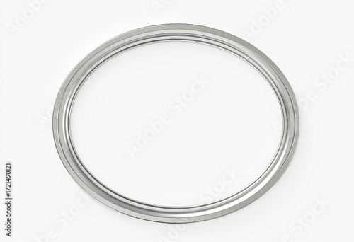Sleek, polished metal oval frame isolated on white, design element, geometric