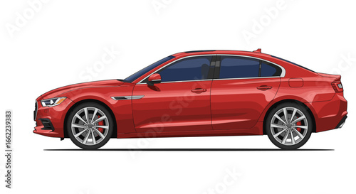 Sleek red sedan side view in modern flat design for automotive concepts
