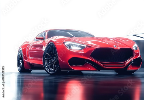 Sleek Red Sports Car in Minimalist High Contrast Setting with Emphasized Reflections