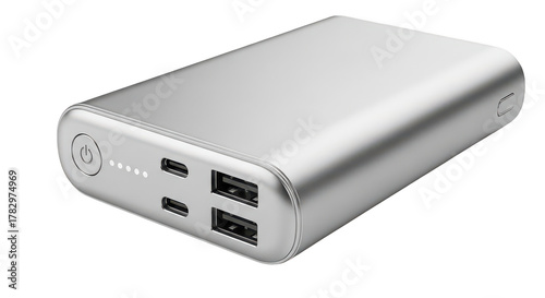 Sleek Silver Power Bank With Usbc And Usba Ports On Black