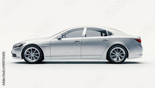 Sleek Silver Sedan Side View on White Background, automotive , vehicle