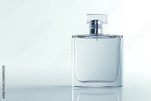 Sleek Square Perfume Bottle on Reflective Surface, Minimalist Product Shot