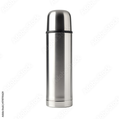 Sleek stainless steel thermal bottle with a cylindrical shape perfect for keeping drinks hot or cold ideal for travel or daily use