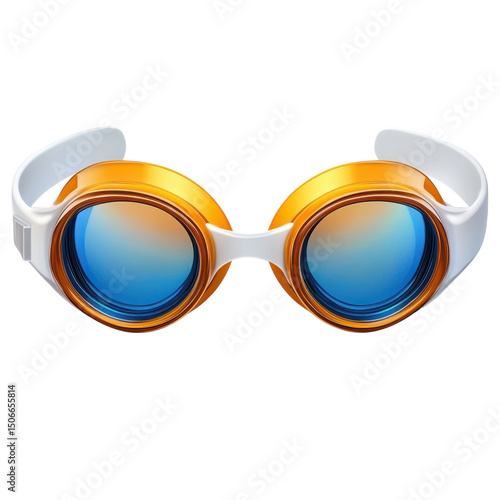Sleek swim goggles reflecting a clear blue pool ready for diving training on transparent background