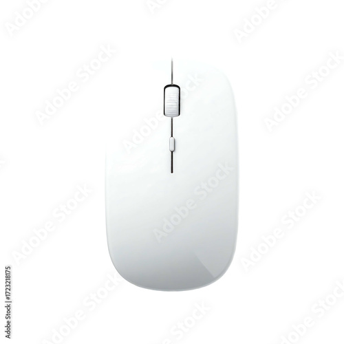 Sleek, white, wireless computer mouse; simple, oval design; single button; minimalist aesthetic; smooth surface