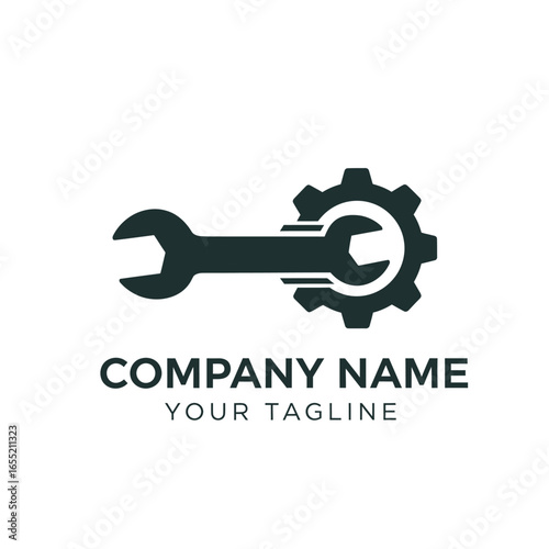 Sleek wrench and gear logo design for a company.