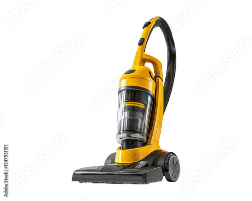 Sleek Yellow Vacuum Cleaner with Transparent Dust Container and Hose