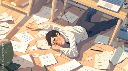 Sleeping at Work, Overworked Employee, Overtime Burnout