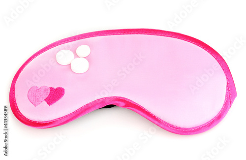 Sleeping mask and tablets isolated on white