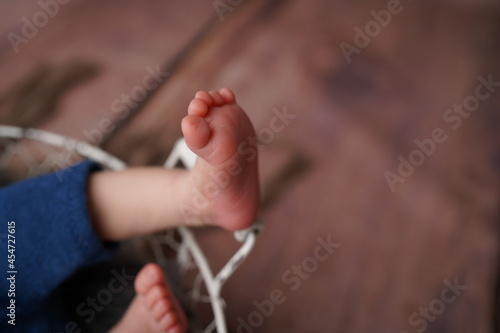 Sleeping newborn boy in the first days of life. Newborn photo session.