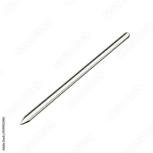 Slender silver-tone bodkin with blunt flat end and large elongated eye for elastic, isolated on a seamless transparent background with no shadows, concept for sewing tool product display