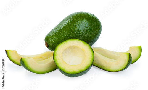 Slice avocado on white background