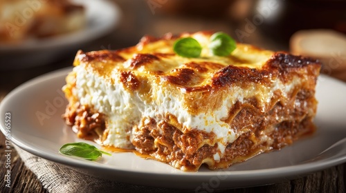 Slice of Lasagna on a Plate