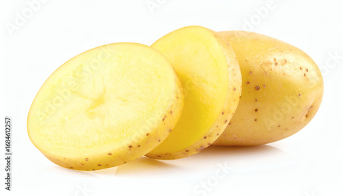 Slice of Raw Potato Isolated on White Background for Fresh Vegetable, Culinary, and Healthy Food Design