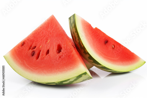 Slice of ripe watermelon, a sweet and refreshing summertime fruit, isolated on a white background