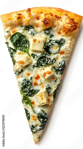 Slice of Spinach Pizza, on White Background, Abstract Image, Texture, Pattern Background, Wallpaper, Cover and Screen of Smartphone, PC, Laptop, 9:16 and 16:9 Format