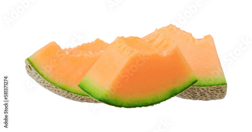 Slice orange melon isolated on transparent background, PNG image