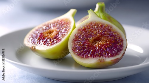 Sliced Fig on a Plate: Close-Up View of Ripe, Juicy Interior