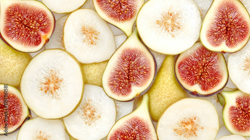 Sliced Figs and Pears Background Texture, Food Photography, Studio Shot, Culinary Use