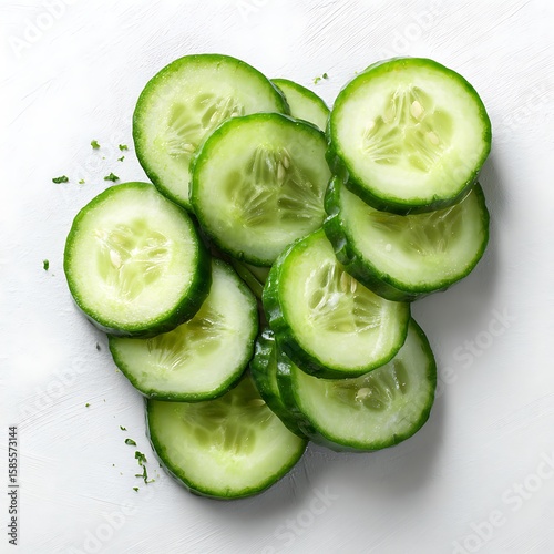 Sliced Fresh Cucumber on White Background
