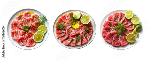 Sliced Fresh Fish with Lime and Herbs on Plate