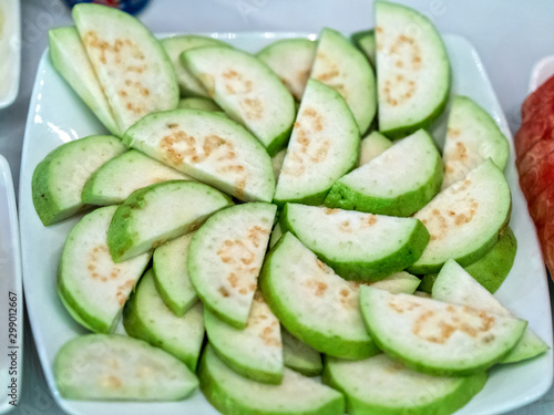 Sliced guava dessert dishes in the restaurant banquet