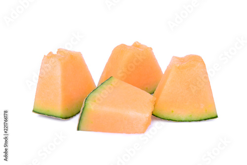 sliced japanese melons, orange melon or cantaloupe melon with seeds isolated on white background