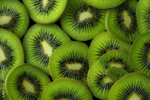Sliced kiwis laid flat forming texture, filling background, for culinary use