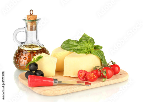 sliced mozzarella cheese with vegetables isolated on white