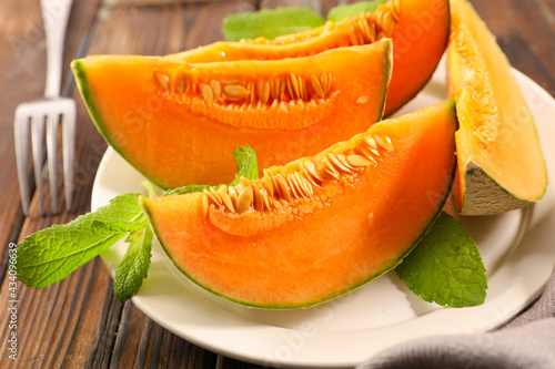 sliced of fresh melon and mint
