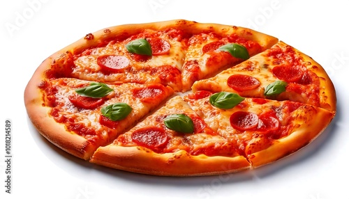 Sliced pizza on white background