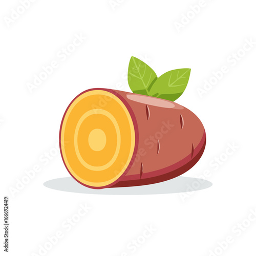 Sliced Sweet Potato with Leaves Fresh Vegetable Illustration