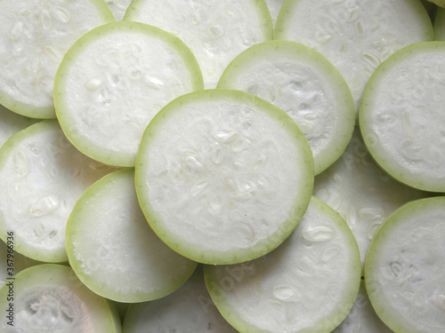 Sliced white and light green color raw Bottle gourd or Lagenaria siceraria