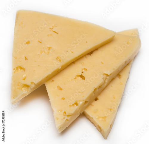 slices of cheese isolated on white background